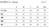 Sサイズ・・・着丈63cm。身幅52cm。肩幅42cm。袖丈62cm。